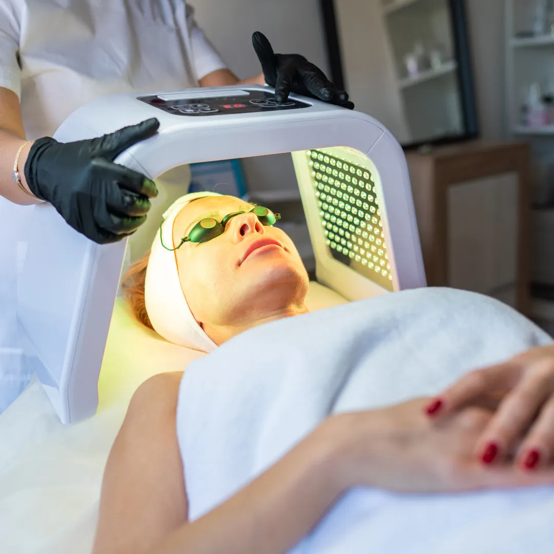 LED light therapy is a commonly used treatment to improve these conditions. It uses a light laser that penetrates the skin to produce new proteins and revitalize the skin.